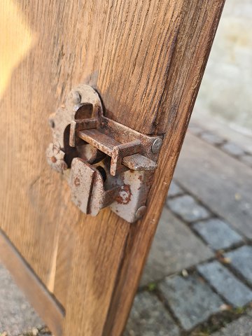 Gammelt vægskab fra 1800 tallet i eg. Fremstår pænt og gedint uden de store brugsspor.