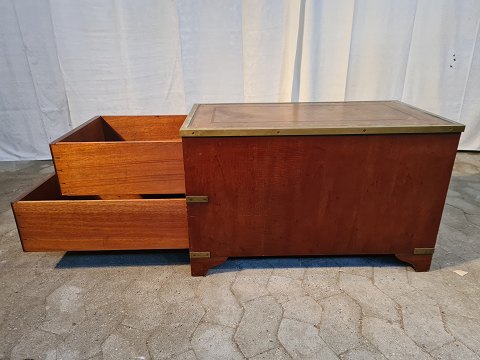 Kommode i fineret mahogni med kunstlæder indlæg, fra 1980erne.