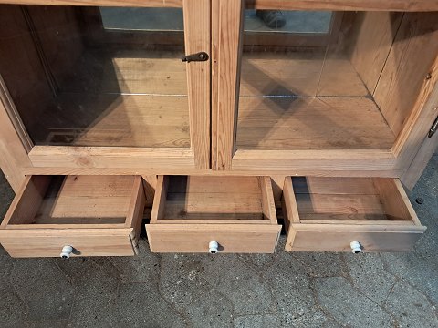 Vitrineskab i massivt fyrretræ, fra 1920erne.