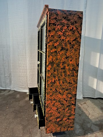 Malet vitrineskab i massivt fyrretræ, fra 1920erne.