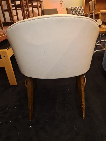 Frode Holms sminkestol fra 1950'erne. Overpolstret med nappa, stel i bøg. Fremstår pæn, velholdt og udmærket stabil.