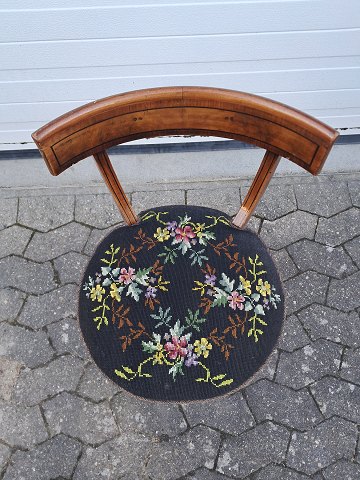 Salonstol i mahogni og bøgetræ med broderet betræk, fra 1910erne.