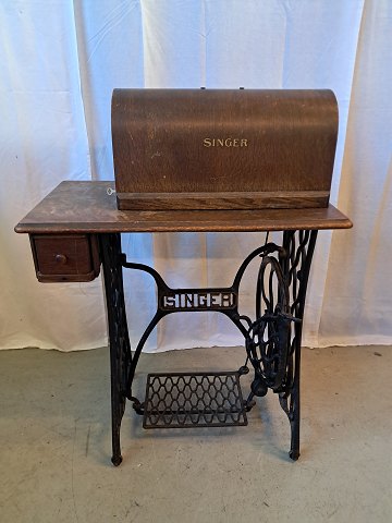 Gammel Singer symaskine på metastel, fra 1910erne.