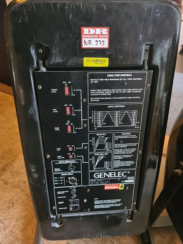 3 GENELEC TRIAMP 1022A gulvhøjtalere. Testet og virker. Fremstår med brugsspor i form af overfladeridser. Kommer med ophæng i metal. Yderligere medfølger 3 stk. der er til reservedele/restaurering. 1 hvor bassen er kaput. 1 der ikke kommer lyd ud af og 1 tomt kabinet. Diverse strøm- og tilslutningkabler medfølger ligeledes.