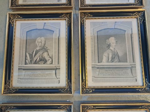 6 Billeder i guldmalet rammer af danske konger, fra 1920erne.
