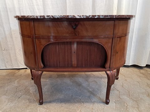 Anretterskab i fineret mahogni med marmorplade, fra år 1918.