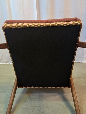 Lænestol i teaktræ med stofbetræk, fra 1960erne.