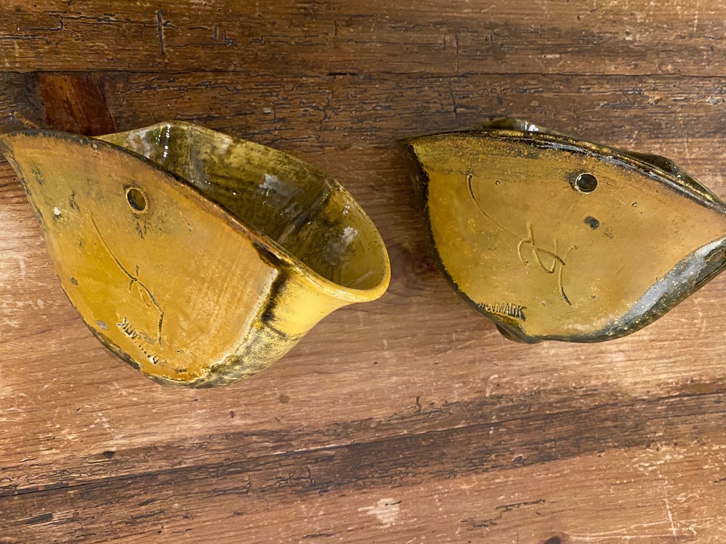 Svend Hammershøi for Kähler, par urangule keramik vaser til at hænge på væggen. Meget fin stand. 1920'erne / 1930'erne, Art Deco.