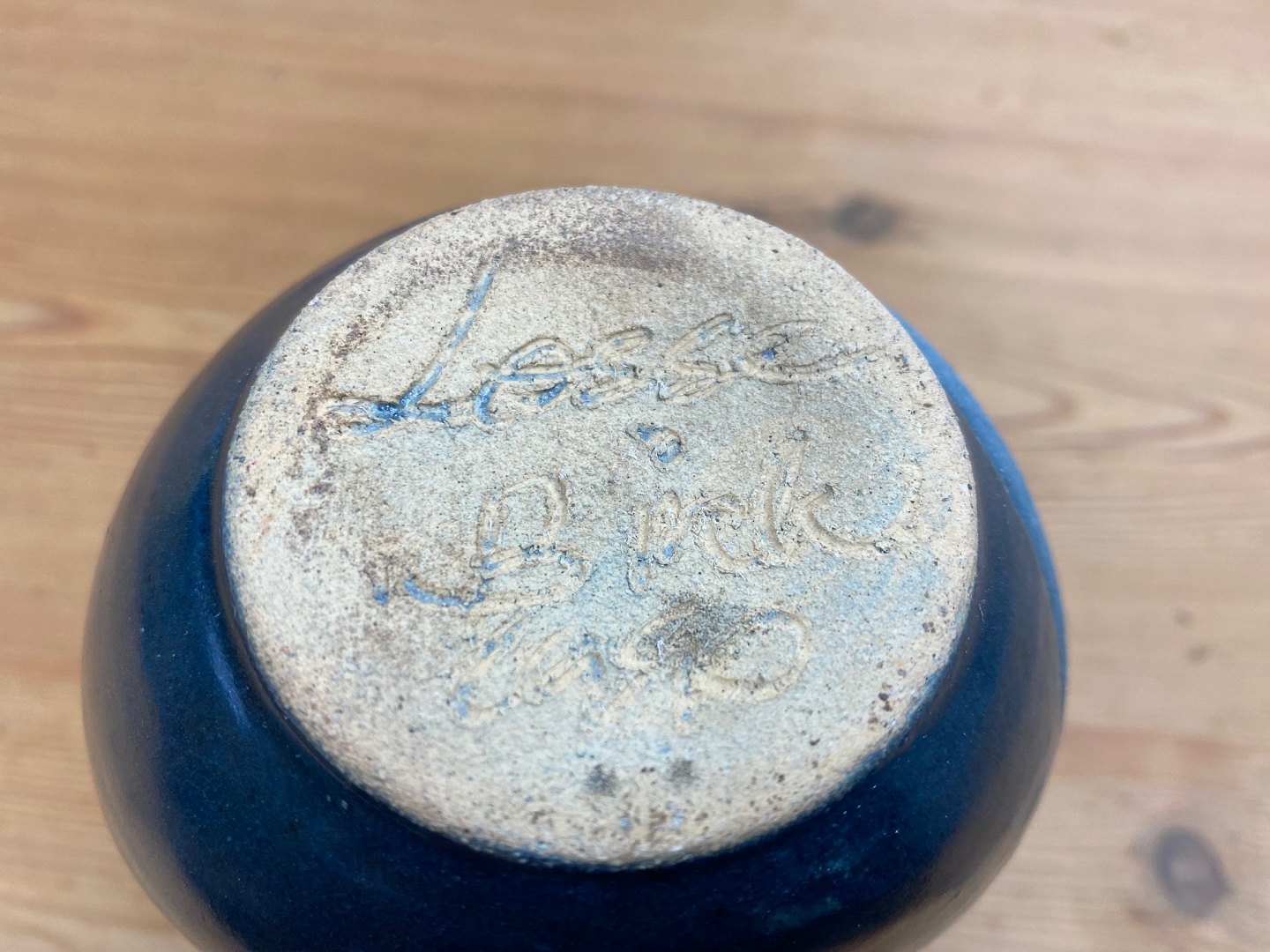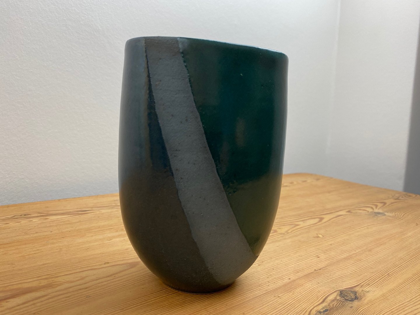 Grøn og blå keramikvase af Lasse Birk, 1980erne.