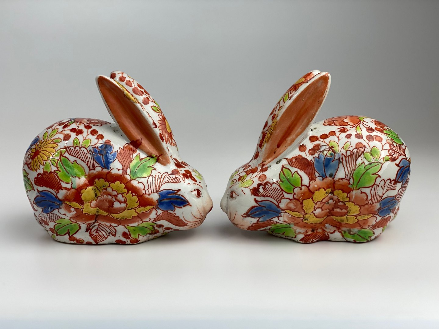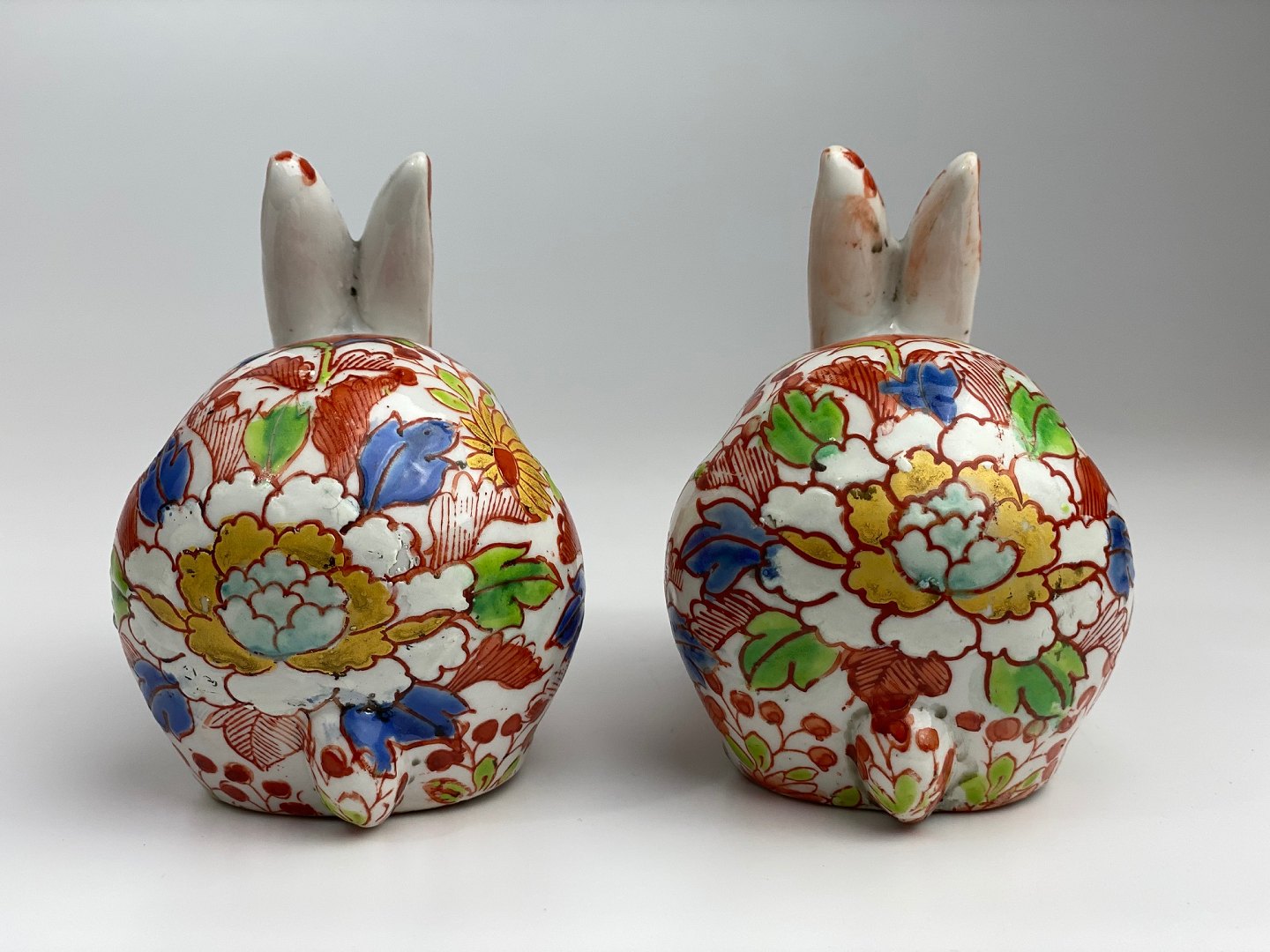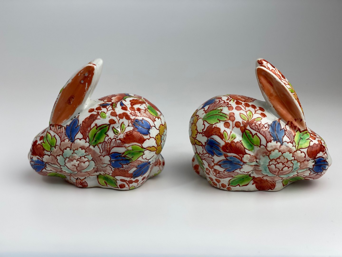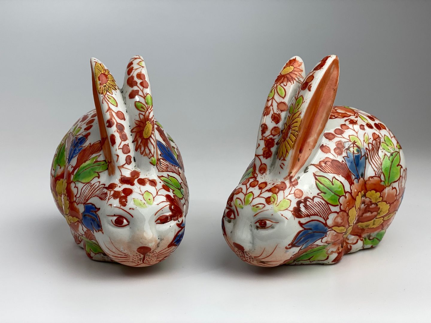 Pair of vintage rabbits in Imari style. 20th century. Height 10 centimetersLength 12 centimetersWeight 230-240 grams per rabbit.