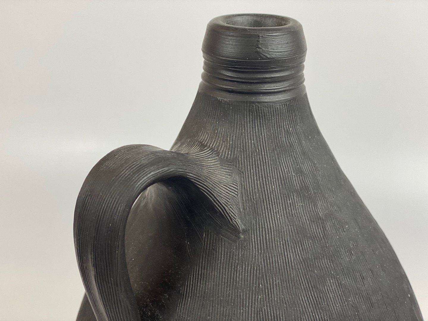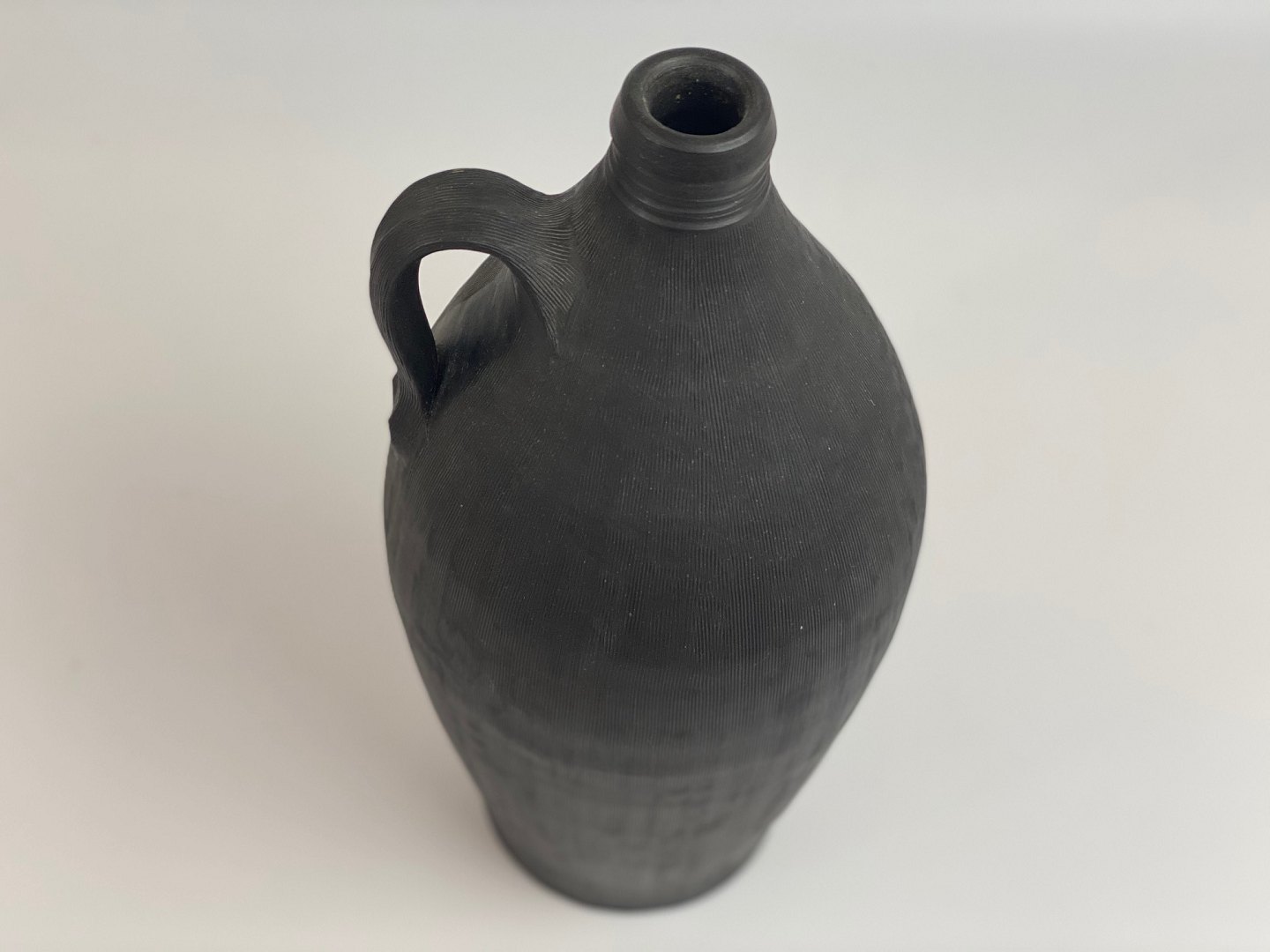 Stor flot brun-sort flaske-vase fra Dagnæs Keramik i midten af det 20. århundrede. Vasen har et indridset lodret mønster og er 33 centimeter høj.