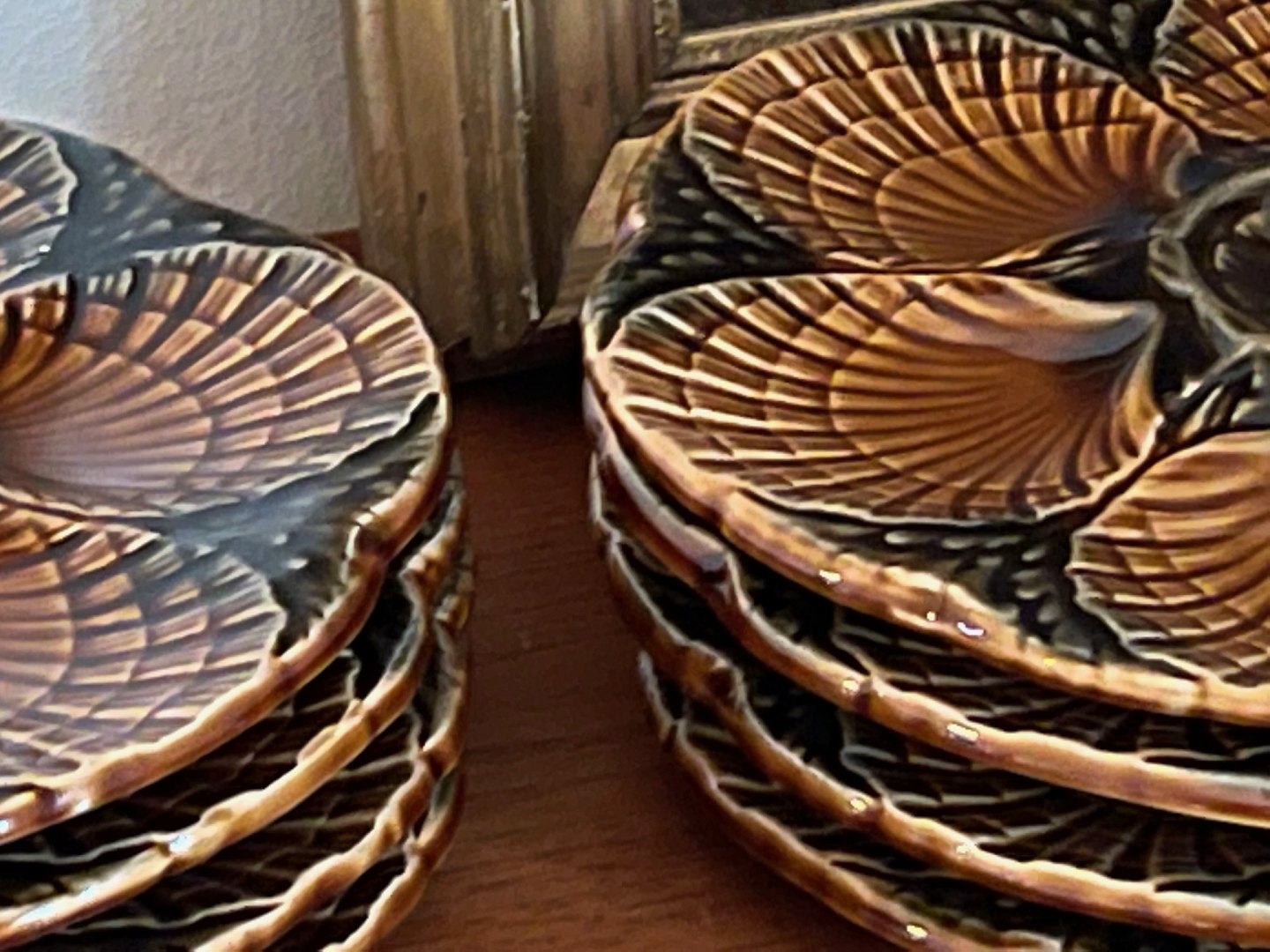 Franske tallerkener til østers eller tappas / fisketappas fra Sarreguemines. Tofarvede: Brune / koksgrå. 350 DKK per styk.