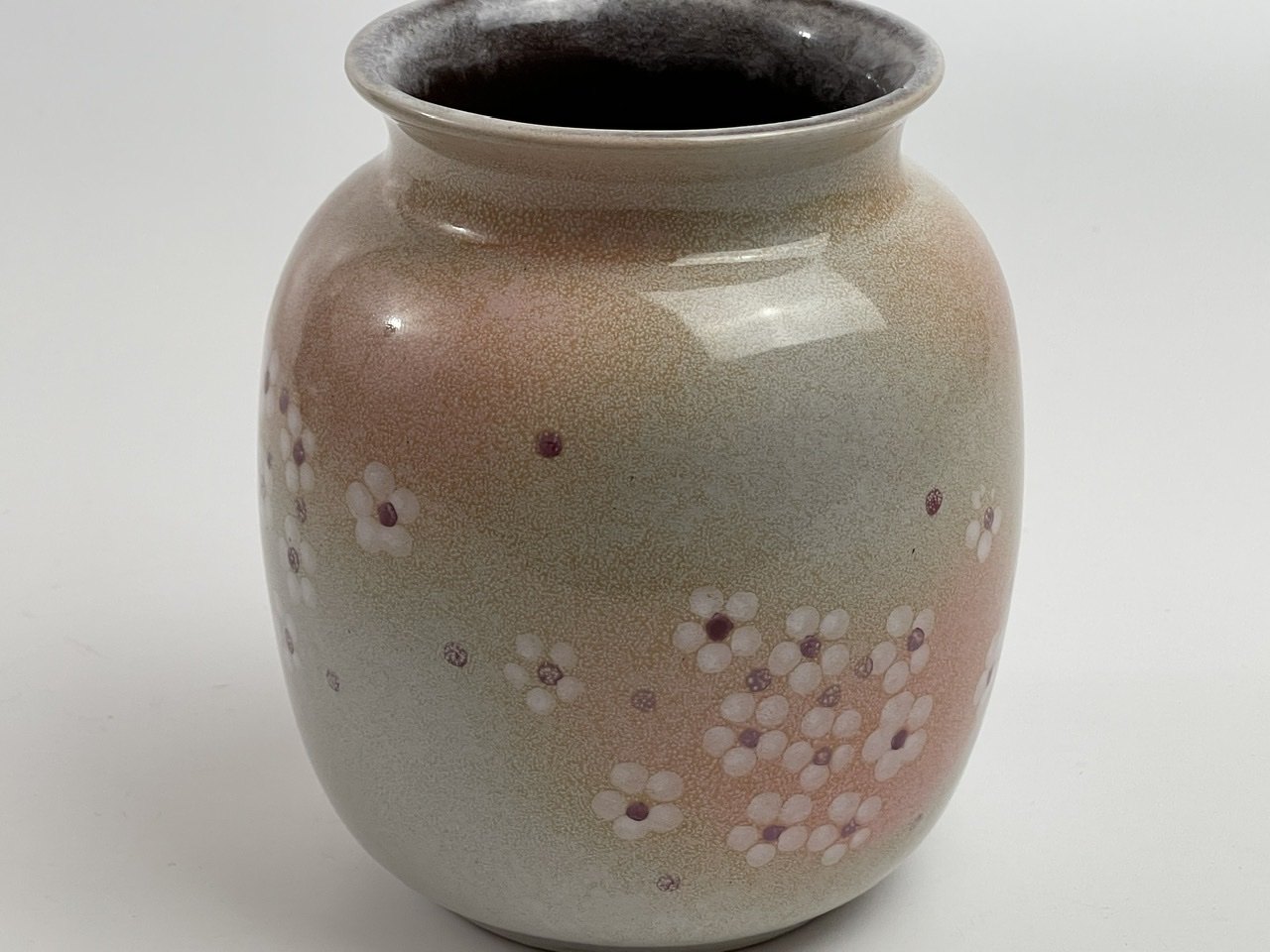 Smuk keramik vase med kirsebærblomster, beige, pink fra Strehla Keramik, daværende Østtyskland