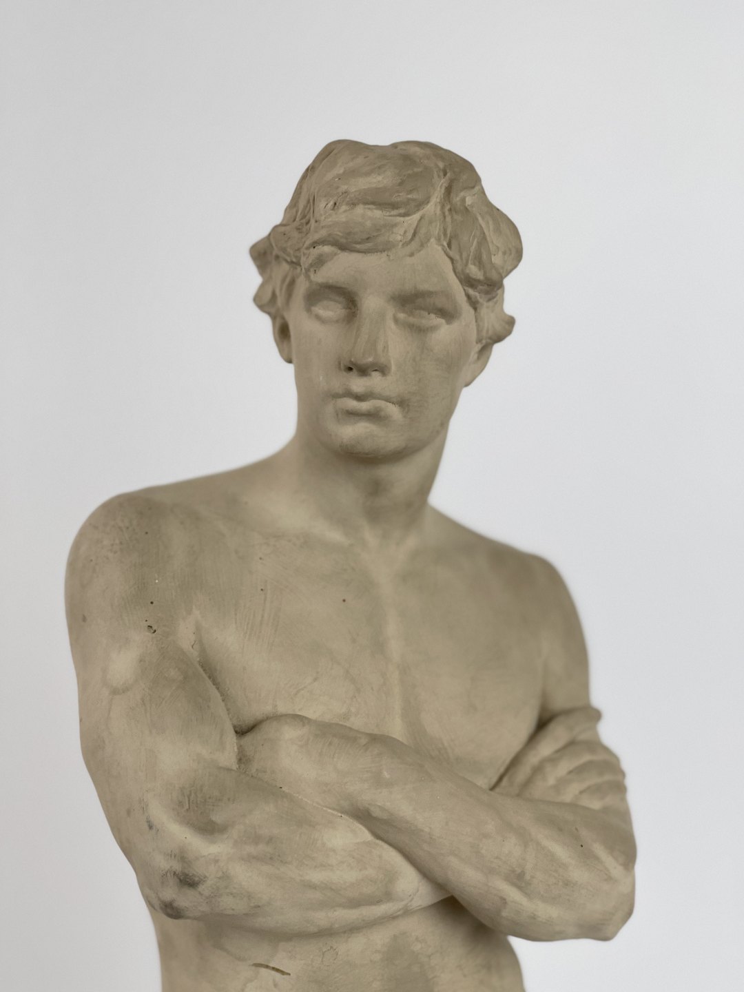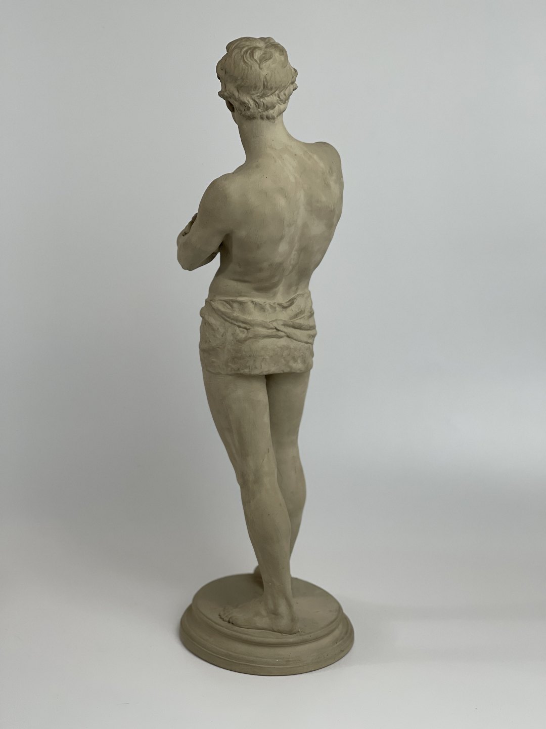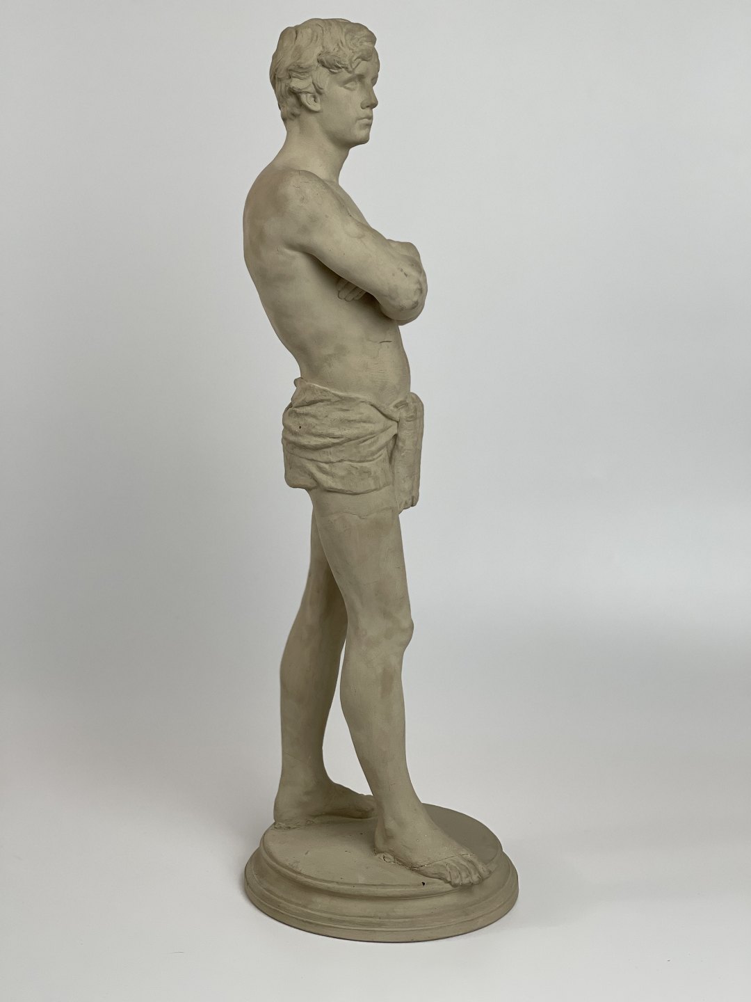 Antique terracotta figure of a standing man with loin cloth. The figure is stamped L. P. Jorgensen Kobenhavn (Copenhagen), Eneret (exclusive right). Circa 1890s.