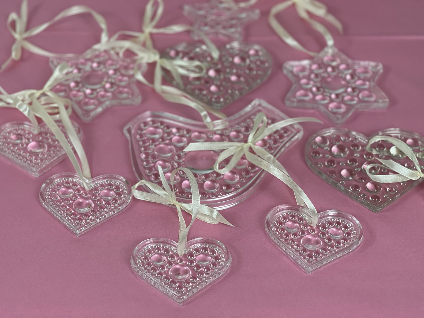 10 norske solfangere / julepynt af glas fra Hadeland glasværk, cirka 1980'erne: