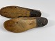 Par antikke skolæster af træ i størrelse 36. Mærker efter skomagerens arbejde med huller efter nåle/søm i sålen