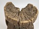 Skammel, Afrika, 20. århundrede. Skamlen er udskåret i et stykke og har top og bund, som forbindes af fire buede ben. Et stykke af budpladen mangler, og stolen har masser af patina, herunder revner og afslag i træet.