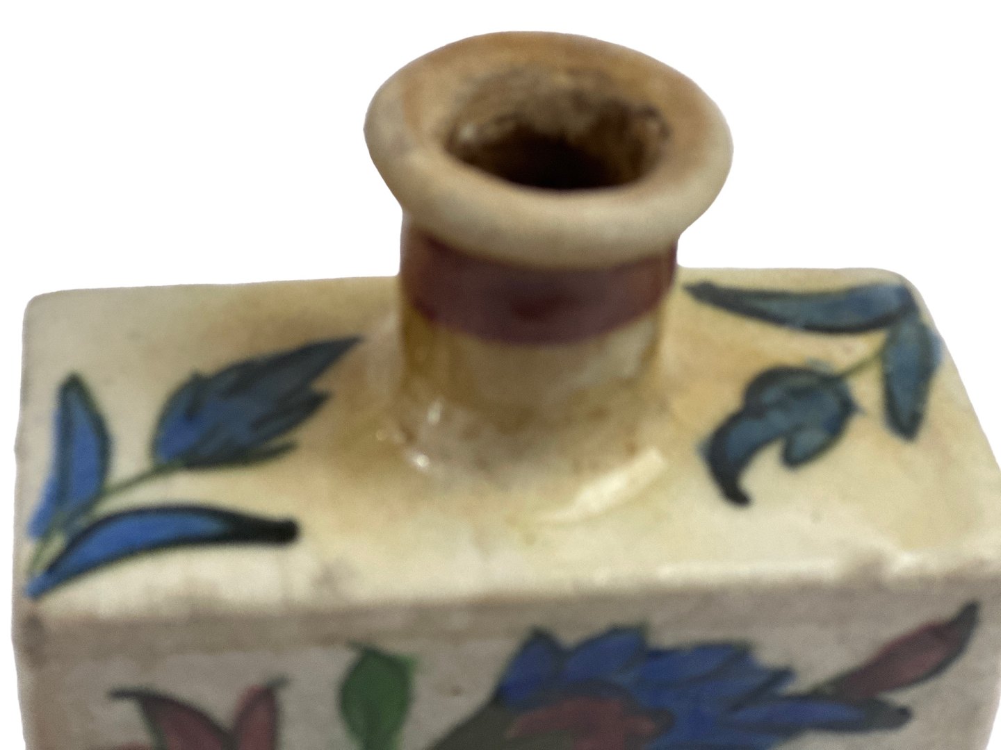 Persian bottle-vase, Iznik pottery, Qajar. Polychrome painting with deer, respectively bird on the front and back - as well as flowers and leaves.