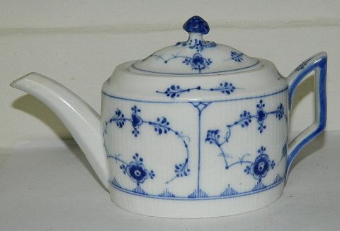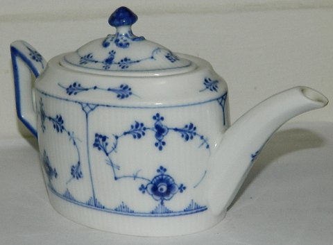 Royal Copenhagen tepotte i riflet musselmalet porcelæn. 1. sortering i perfekt stand. Dekorationsnr. 1/252 Fabriksmærket på bunden. Produceret mellem 1900-1923. 12 cm høj.
