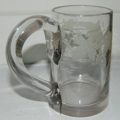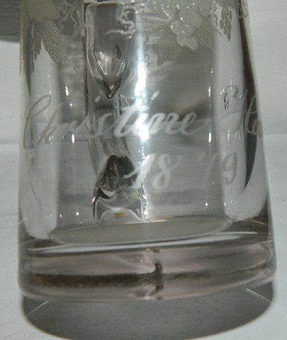 Heavy mug from 1879 with a girls name Christiane Hansen 1879. Name engraved. Leaf decoration in relief. In perfect condition. 12 cm (4,75") high.