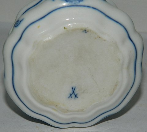 Inkwell in porcelain from Meissen. The lid is missing. In good condition. Factory mark on the bottom. 4 cm (1,50") high and 6 ½ cm (2,50") in opening diameter.