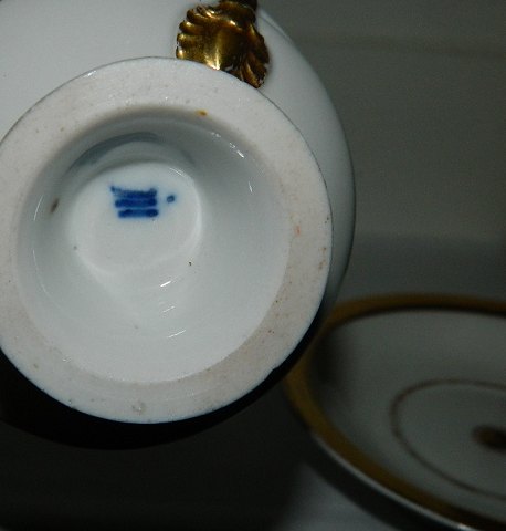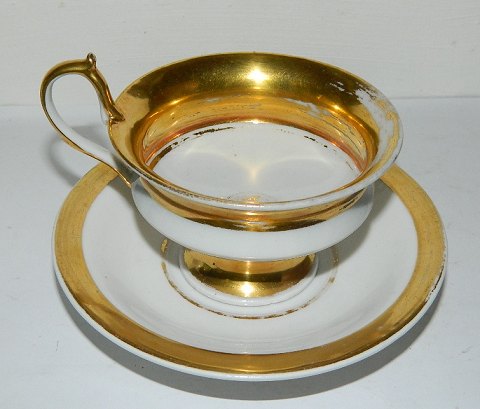 Royal Copenhagen porcelain cup. Made in the empire period from around 1820. In good condition with no damage or repairs. Normal tracks of use on the gold. Cup and saucer factory marked. 7½ (3")cm high