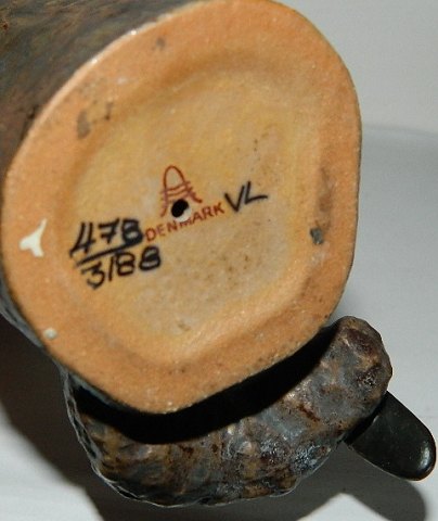 Figure in ceramics of budgerigar Aluminia by Jeanne Grut. Factory first production. In perfect condition. 15 cm (6") high.