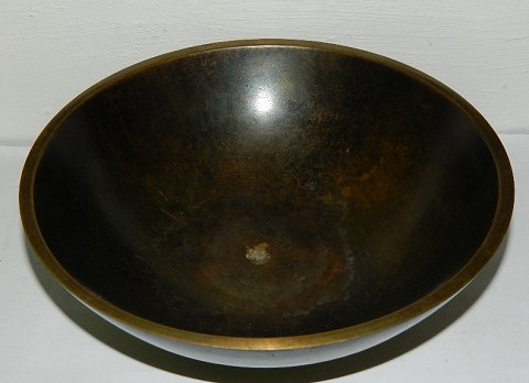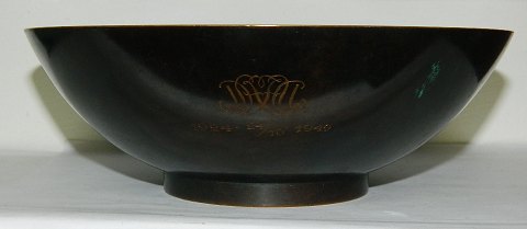 Heavy bronze bowl from Denmark. Made in the middle of the 20th century. Engraved with a monogram and the text: 1924 24/10 1949. Factory mark on the bottom - a crown and BRONCE. Normal wear of use. Small spot in the bottom of the bowl where the bronze patina is worn away. No damages or repairs. Weight: 2,480 kg. Measures: 7 cm (2,75") high and 20½ cm (8") in the opening diameter.