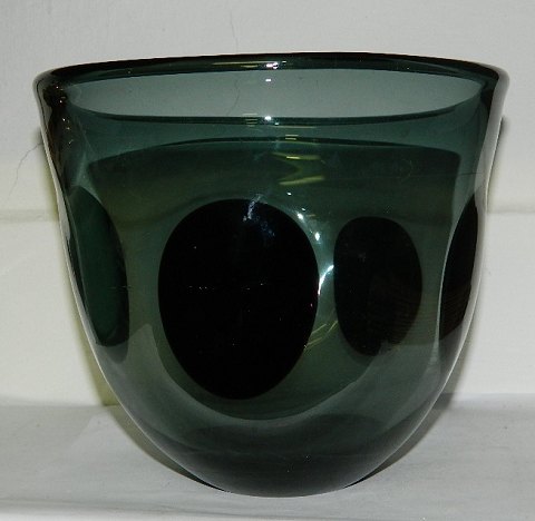 ART GLASS: Unique bowl in glass made by Per Lütken for Holmegaard Glasswork. In perfect condition. Engraved on the bottom: PL HOLMEGAARD 1961 and model number. 15 ˝ cm (6") high and 17 ˝ cm (6,75") in diameter.