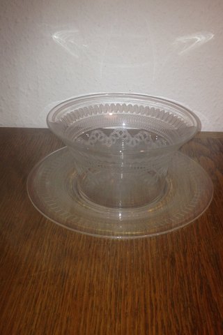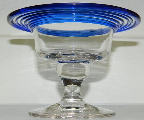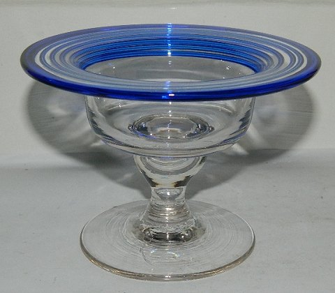 Sugar or candy bowl on foot in glass with blue thread. Made at Aalborg Glaswork around 1900. In perfect condition. 9 cm (3,50") high and 12 ½ cm (5") in diameter.