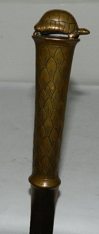 Letter opener with figurine of turtle in bronze. In perfect condition. Produced between 1930-1950. 24 cm (9,50") long.