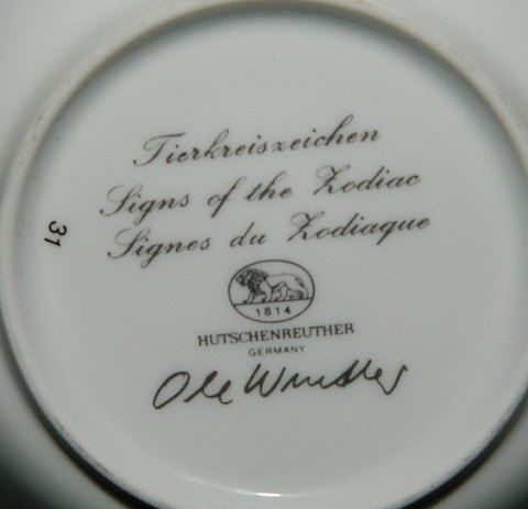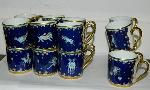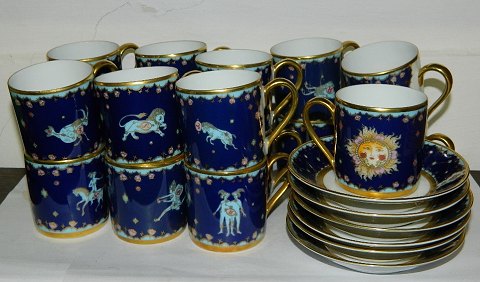 17 cups and 6 saucers in porcelain. Zodiac motifs. Designed by Ole Winther for Hutschenreuther. Set in the form of cup and saucer costs d.kr. 150,00. The cups cost d.kr. 75,00 individually. All in perfect condition. 6 cm high.