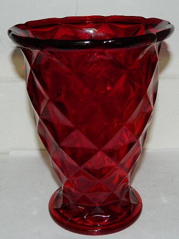 Klassisk vase i rødt presset glas fra Fyns Glasværk. Fremstillet omkring 1930. I perfekt stand. 17 cm høj. LIGNENDE KØBES