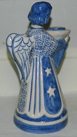 Stor figur af engel i keramik fra den bornholmske lervarerfabrik L. Hjorth i Rønne. Figuren fungerer tillige som lyseholder. I perfekt stand. Fabriksstemplet på bunden med bl.a. modelnummer 418. Figuren er 22½ cm høj. LIGNENDE KØBES