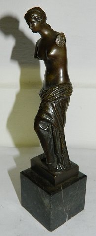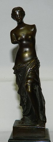Figur i bronze af Venus fra Milo. Fremstillet for Louvre i Paris ca. 1950. Figuren fremstår i perfekt stand. 14½ cm høj. 19 cm incl. sokkel i sten.