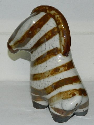 Figur af zebra i stentøj fra Arabia. I god stand uden skader eller reparationer. Fabriksmærket på bunden. 14½ cm høj.