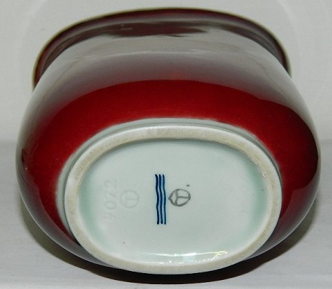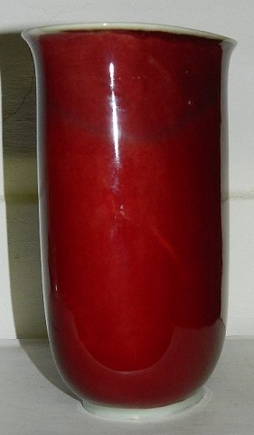 UNICA PIECE FROM ROYAL COPENHAGEN: Elegant red glazed vase from Royal Copenhagen. Made by Thorkild Olsen (1890-1973). No damages or repairs. Do have a few small pin-wholes in the glaze around the body. Factory mark and artist signature on the bottom. 19 cm (7,50") high.