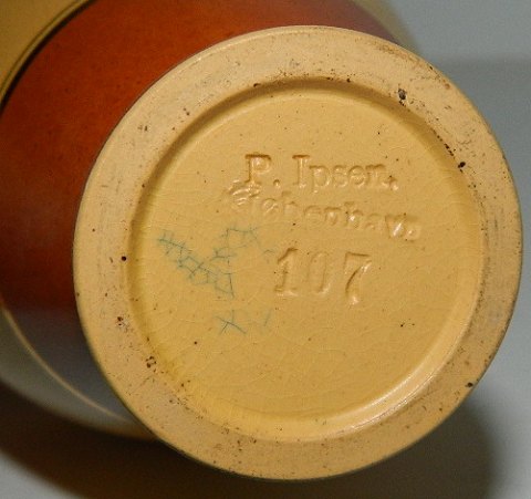 P. Ipsen vase i terracotta med ægyptiske dekorationer