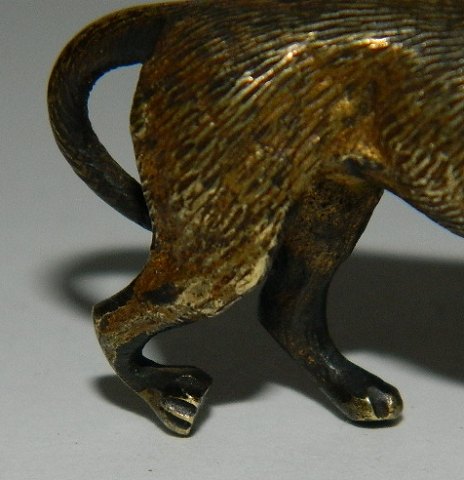 Figure in bronze of a dog from Austria called: Vienna bronze. No damages. Right back legg a little bent. 3 ½ cm high and 5 cm wide.