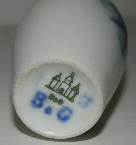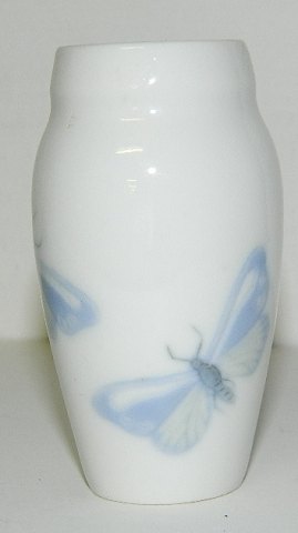 Miniature vase i porcelæn fra Bing & Grøndahl. Fremstillet omkring 1910. Dekoreret med to sommerfugle. I god stand. 2. sortering. Fabriksmærket på bunden. 7½ cm høj.