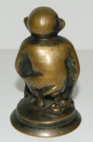 Figur i bronce af siddende abe. Fremstillet omkring 1930. I god stand. Ikke stemplet. 7½ cm høj.