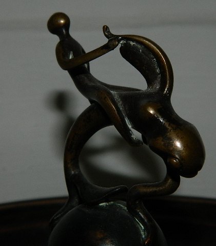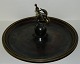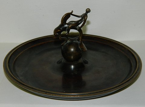 Tray in bronze with decoration of man on fish - on a ball. Designed by Ib Just Andersen (1884-1943). The surface without tracks of use. Made around 1940. Factory logo stamped on the bottom. 11 ½ cm high and 21 cm in diameter. Instagram #temaantik