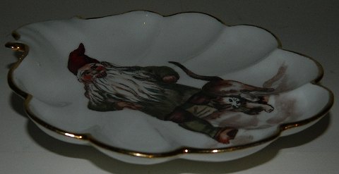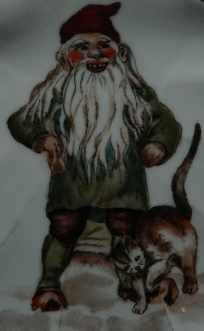 Dish in porcelain by Bing & Grondahl. Made in the late 19th century. Painted in overglaze with gnom and cat. In perfect condition. Factory mark in blue on the backside. 3 cm high, 17½ cm long and 16 cm wide.