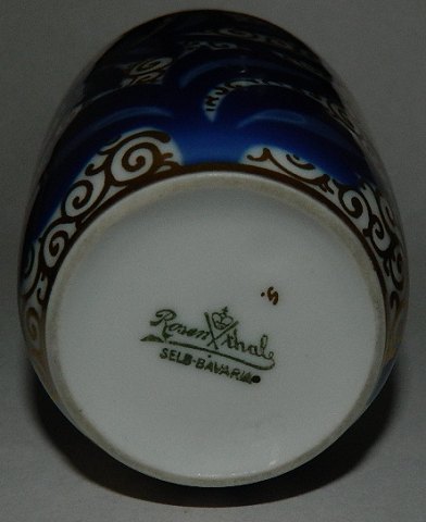Vase in porcelain by Rosenthal, Germany from aorund 1920. Art Nouveau decoration in blue and gold. In perfect condition. Factory mark on the bottom. 14½ cm high.