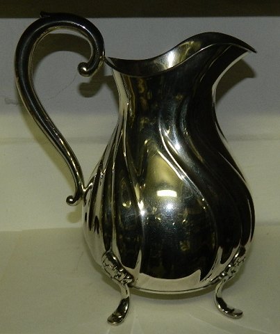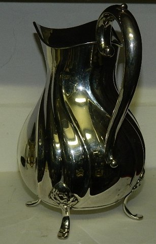 Stor kande i sølvplet på tre fødder. Fremstår i god stand. Overfladen uden brugsslid. Muligvis en mindre reparation på kanten til venstre for hældetuden (se foto). 23½ cm høj.