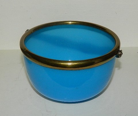 Sugar bowl in blue opaline glass from the late 19th. century. Metal Assembly with handle. In perfect condition. 7½ cm high.