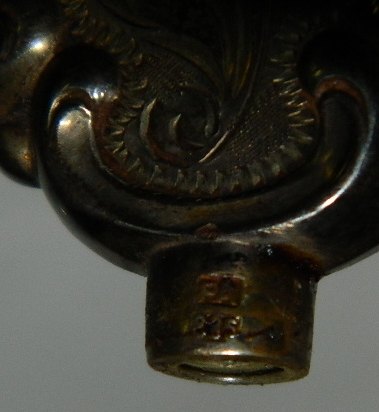 Small perfume flacon in silver with stopper. Silver Stamped and maker initials. 19th. century. In good condition with no damage or repairs. 5½ cm high.