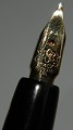 Black Montblanc Masterpiece no. 644N fountain pen with gold double cap. Made in the 1950s. In good and writeable condition with filling mechanism - piston filler - that works. All original Montblanc parts incl. 14 carat 585 gold nib - medium size. 14 cm long.