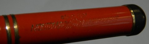 Coral red Original Montblanc Simplo Masterpiece No. 20 fountain pen from around 1930. In good condition. New rubber bag must be inserted before use - This can be done by adding d.kr. 300.00 to the price. No damage or repairs. All parts original for this model ex. 14 carat gold nib. 12½-13 cm long.