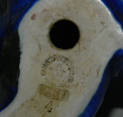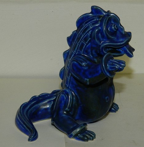 Wilhelm Kaage - Dragevalp. Gustavsberg ca. 1940 Fremstillet i stentøj. Dækket af blå glasur. Stempelsignatur GUSTAVSBERG 4 samt studiostempel og KÅGE. Mindre skår på rygfinnen. Fabriksfejl. Glasur henover skåret ! Ellers i god stand. 11½ cm høj.